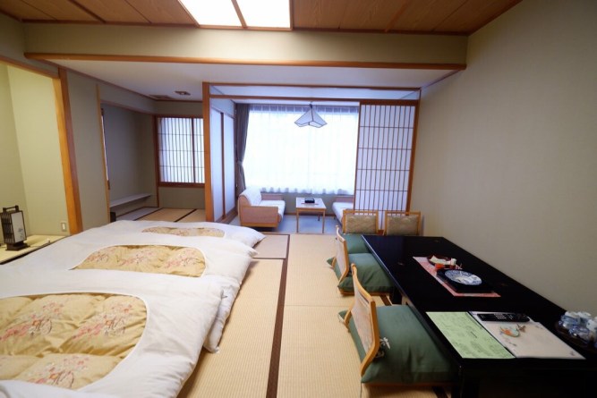 ที่ Hotel Shousenkaku Kagetu ค่ะสะดวกดีโรงแรมสวยมาเป็นกลุ่มก็นอนด้วยกันได้