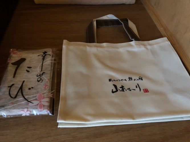 ได้เวลาออนเซ็นแล้วจร้าาาาาา กระเป๋ากับถุงเท้าแบบทาบิเนี่ย เอาหกลับได้นะคะ เค้าแจก