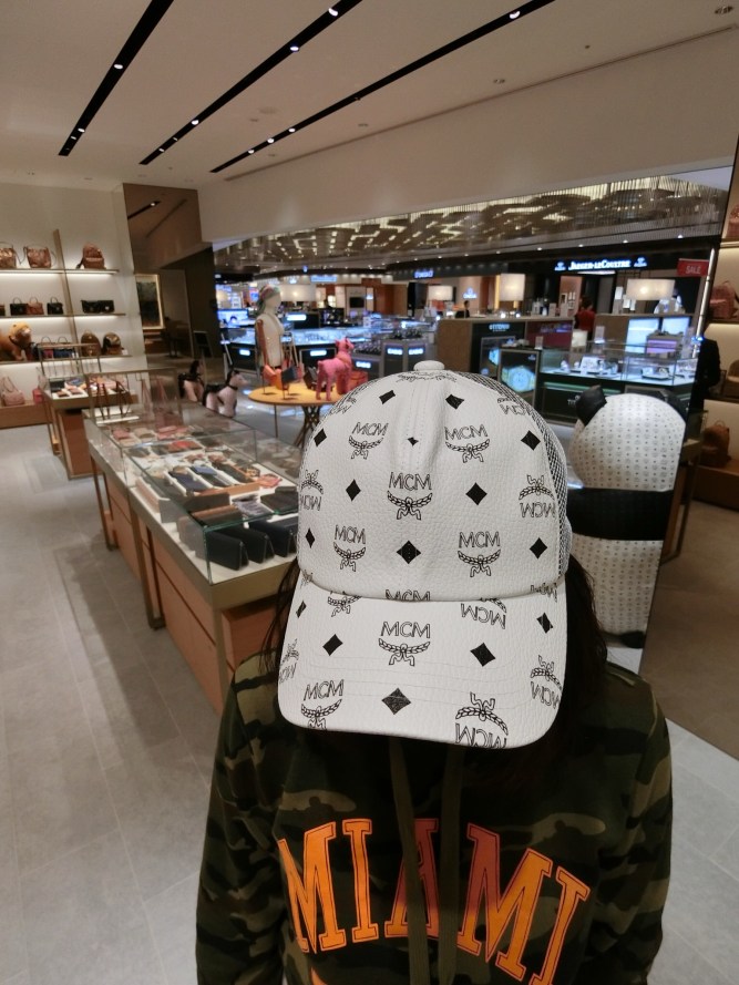 พูดตรงๆ ว่าก่อนมาไม่ได้เตรียมใจว่าจะต้องมาซื้อกระเป๋าอะไรแบบนี้เลยค่ะ แค่มาดูหมวก เพราะเล็งไว้นานแล้ว เลยชวนน้องมาดูว่าเออถ้าจะเอาหมวกแบรนด์เนี่ยต้องคิดก่อนเพราะหมวก็คือหมวก อันนี้เพื่อนๆ หลายคนเตือนสติมาแบบนี้จริงๆ ซื้อมาแล้วจะใช้คุ้มมั๊ย มันมีราคาอยู่นะ แล้วก็มันจะปลิวหาย ร่วงมั๊ย แต่เป็นคนชอบหมวก แว่นตาอยู่แล้ว เลยคิดว่าเอาเหอะ ไม่เคยซื้อหมวกแพงก็จริง แต่ก็จะซื้อแล้วแหล่ะวันนี้