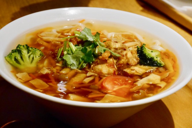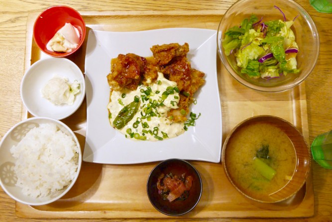อาหารประเภท เนื้อ มีทั้ง หมู ไก่ เนื้อวัว หรือประเภท ปลา นอกจากนี้สำหรับคนที่ไม่ทานเนื้อ ก็มีเมนูผักกับเต้าหู้อีกด้วย