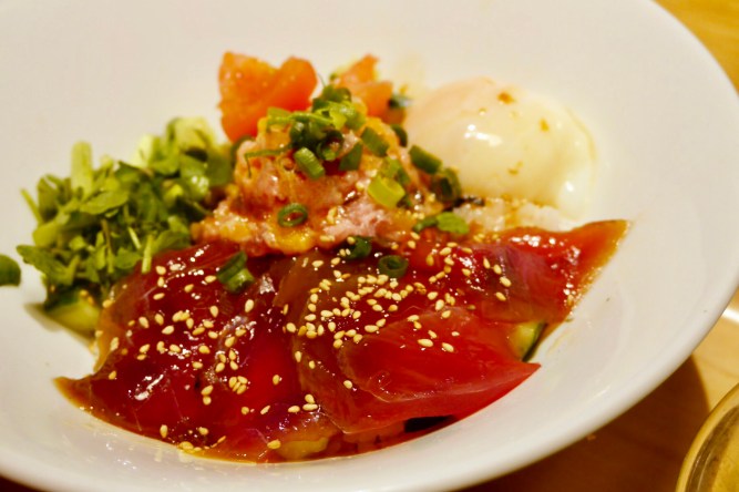 3.อันนี้จะเป็นเมนูข้าวหน้าปลามากุโระ ใครที่ชอบทานปลาดิบแนะนำเมนูนี้เลย มีทั้งปลามากุโระ และไข่ออนเซนมาให้ด้วย