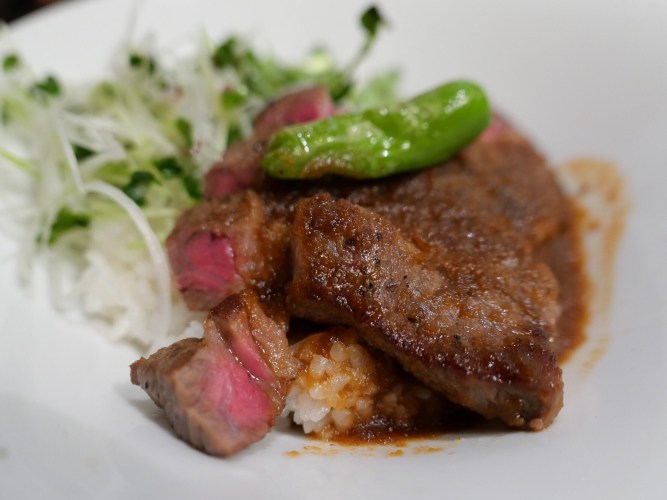 มีข้าวอยู่ด้านล่าง ทานเนื้อกับข้าวมันเป็นอะไรที่ฟินมากๆ แนะนำให้สั่งเป็นset จะมีซุปมิโซะมาด้วยพอหน้าหนาวแล้วกินซุปด้วยเพิ่มความฟินเข้าไปอีกจ้า