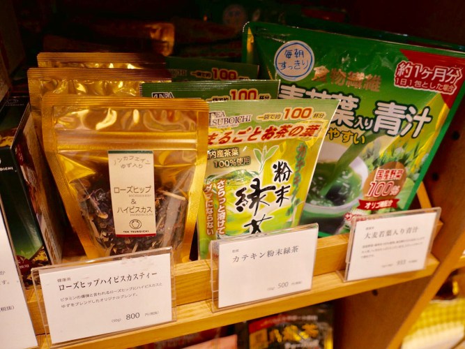 ในร้านแห่งนี้รวมสารพัดชาเขียวทั้งแบบขนม และแบบชงดื่ม