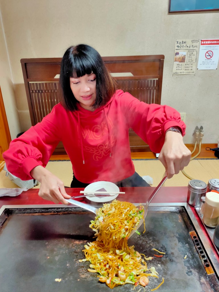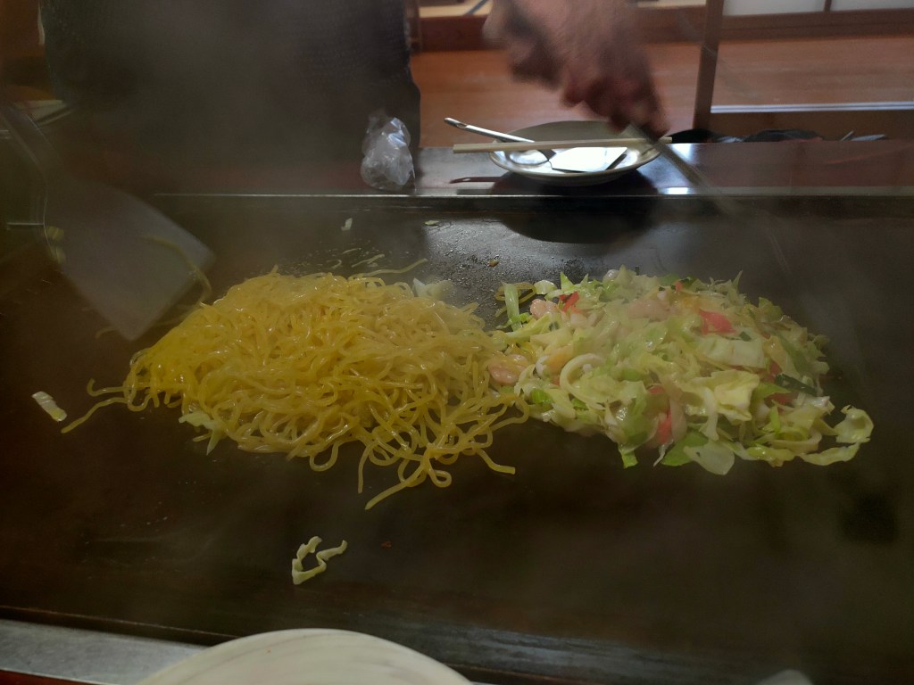 มื้อกลางวัน ยากิโซบะ Teppan Jinenbou (じねん坊) ที่อยู่บนถนนคันดะ โดริ ถนนคนเดินเลียบไปยังศาลเจ้า จะมีคุณป้ามาผัดให้เราทานแบบเทปปัน ร้อนๆ สนุกสนานกับการทานกะทะร้อนแบบนี้ แล้วของเค้าเส้นอร่อย ที่สำคัญ ราคาถูกมาก