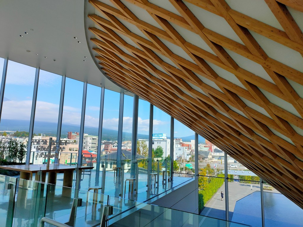 5. Mt. Fuji World Heritage Centre, Shizuoka 静岡県富士山世界遺産センター ที่นี่สร้างตึกในแบบให้เห็นเป็นฟูจิซังหัวกลับ แต่ถ้ามองจากเงาในน้ำเราจะเห็นฟูจิซังในแบบตั้งตะกรานตา ไม้ทั้งหมดที่สร้างอาคารหลังนี้ มาจากเชิงเขาฟูจิ มีชื่อว่าไม้ฟูจิฮิโนกิ