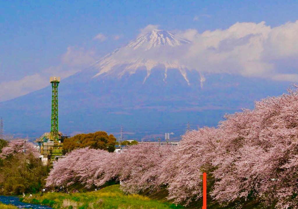 8.*ถ้าเป็นช่วงซากุระออกก็ขอแนะนำที่นี่ค่ะ ริวบุนจิ โนะซากุระ (龍厳淵の桜並木) แม่น้ำและฟูจิ ยังไม่หมดแค่นั้นนะคะ มีจุดที่สวยเพิ่มเติมคือดอกนะโนะฮานะ สีเหลืองตัดกับซากุระ สวยมากๆ