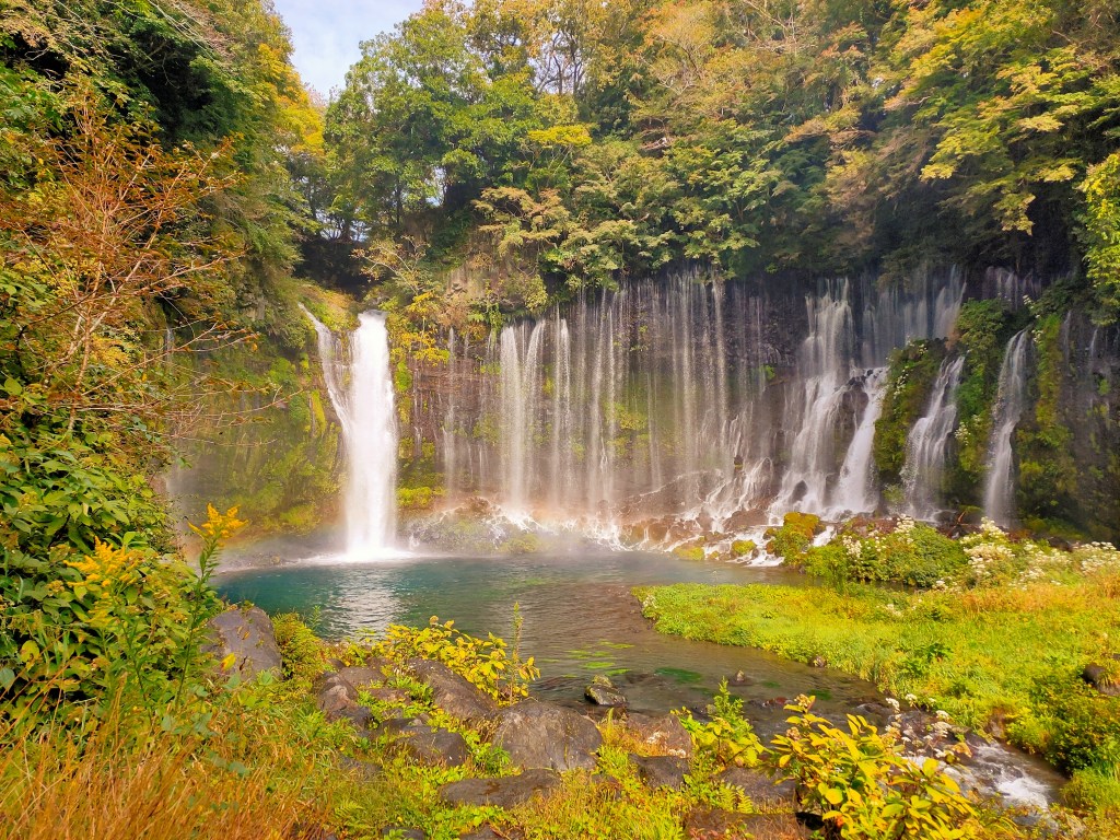 2. น้ำตกชิราอิโตะ (白糸の滝)ที่นี่สามารถชมฟูจิซังได้ในมุมที่ไม่เหมือนใคร เป็นน้ำตกและภูเขาไฟฟูจิตั้งอยู่ด้านหลัง สวยฟินเว่อร์ ที่นี่ยังมีร้านค้า และร้านของฝากมากมาย ราคาไม่แพงอีกด้วย