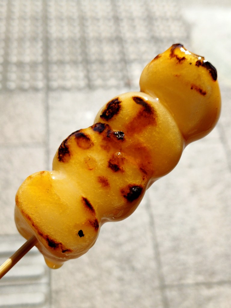 ขนมแนะนำ ดังโงะหน้าศาลเจ้า ที่ถนนคนเดินคันดะมีร้านนี้ขายดังโงะ เนื้อแป้งนุ่มมากๆ ค่ะ