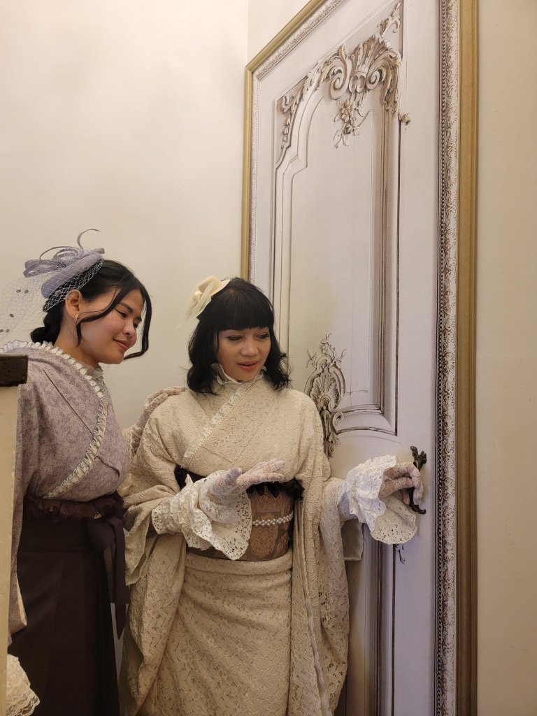 ลายดอก หรือ เนื้อผ้าลูกไม้ก็สวย และได้เป็นเทรนสำหรับช่วงนี้เลยค่ะ เรียกได้ว่าการแต่งชุดกิโมโนแบบไทโช โรมานซ์ เป็นการแต่งกายแบบญี่ปุ่นประยุกต์ซึ่งมีอิทธิพลฝรั่งเข้ามามีบทบาทในการแต่งกายมากขึ้น ซึ่งก็จะมีการเพิ่มหมวก เพิ่มผ้าลูกไม้ และการใส่รองเท้าบูทมากขึ้น ดูดีมีสไตล์ไปอีกแบบนึงนนะคะ ใครที่ไม่เคยแต่งก็น่าจะลองมาแต่งดูสักครั้ง