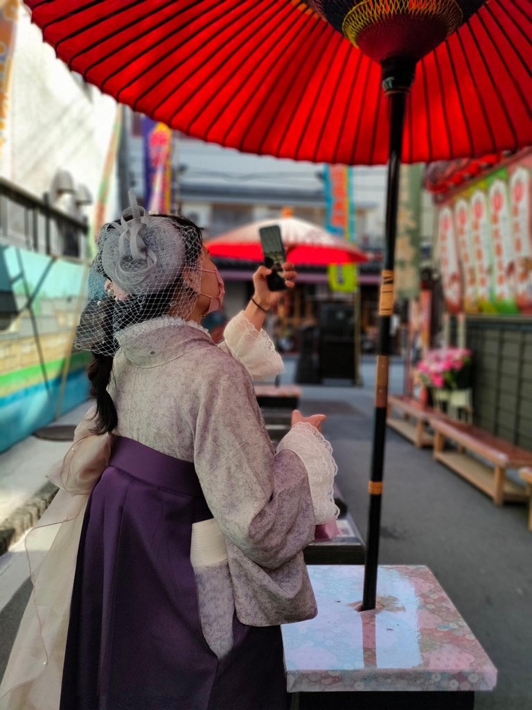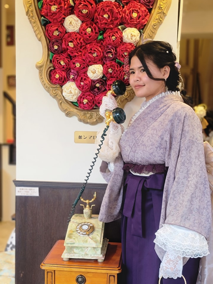 ภายในร้านเค้ามีมุมสวยๆ ไว้ให้ถ่ายรูปเต็มไปหมดค่ะเพราะฉะนั้น เราจะออกจากร้านยากมาก สำหรับชุดที่วันนี้แอดมินนะนะเลือกจะเป็นชุดกิโมโนนะคะ แต่ชุดที่น้องพีชเลือกสีม่วงนั้นจะเป็นชุดฮาคามะ