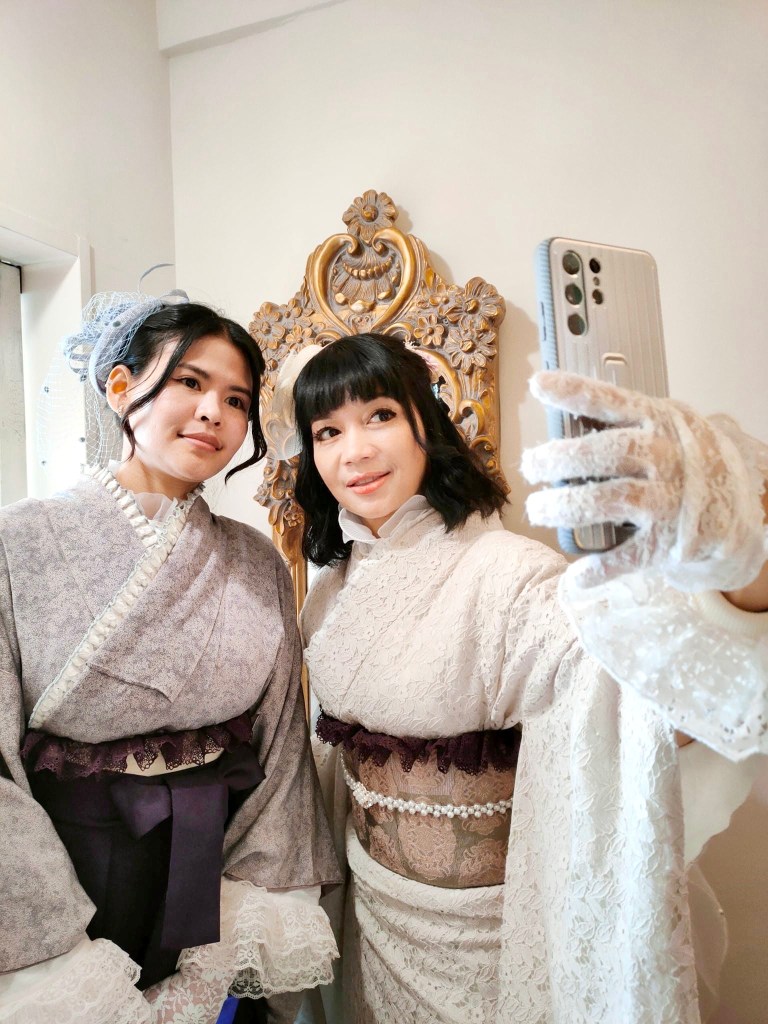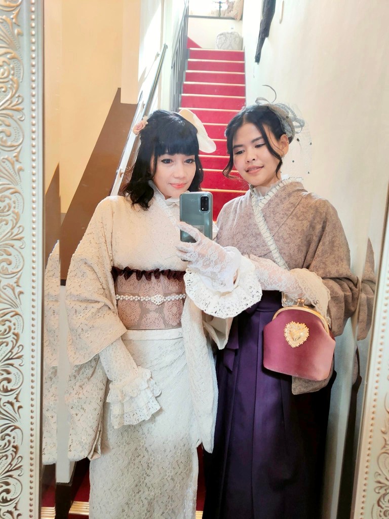 วันนี้จะพาทุกๆ คนไปลองสวมชุดกิโมโนที่ฮิตมากๆ ในช่วงนี้กันค่ะ เป็นกิโมโนในแบบ ไทโช โรมานซ์ หน้าตาจะฟรุ้งฟริ้ง มีความเป็นฝรั่งปนๆ อยู่บ้างนะคะ
